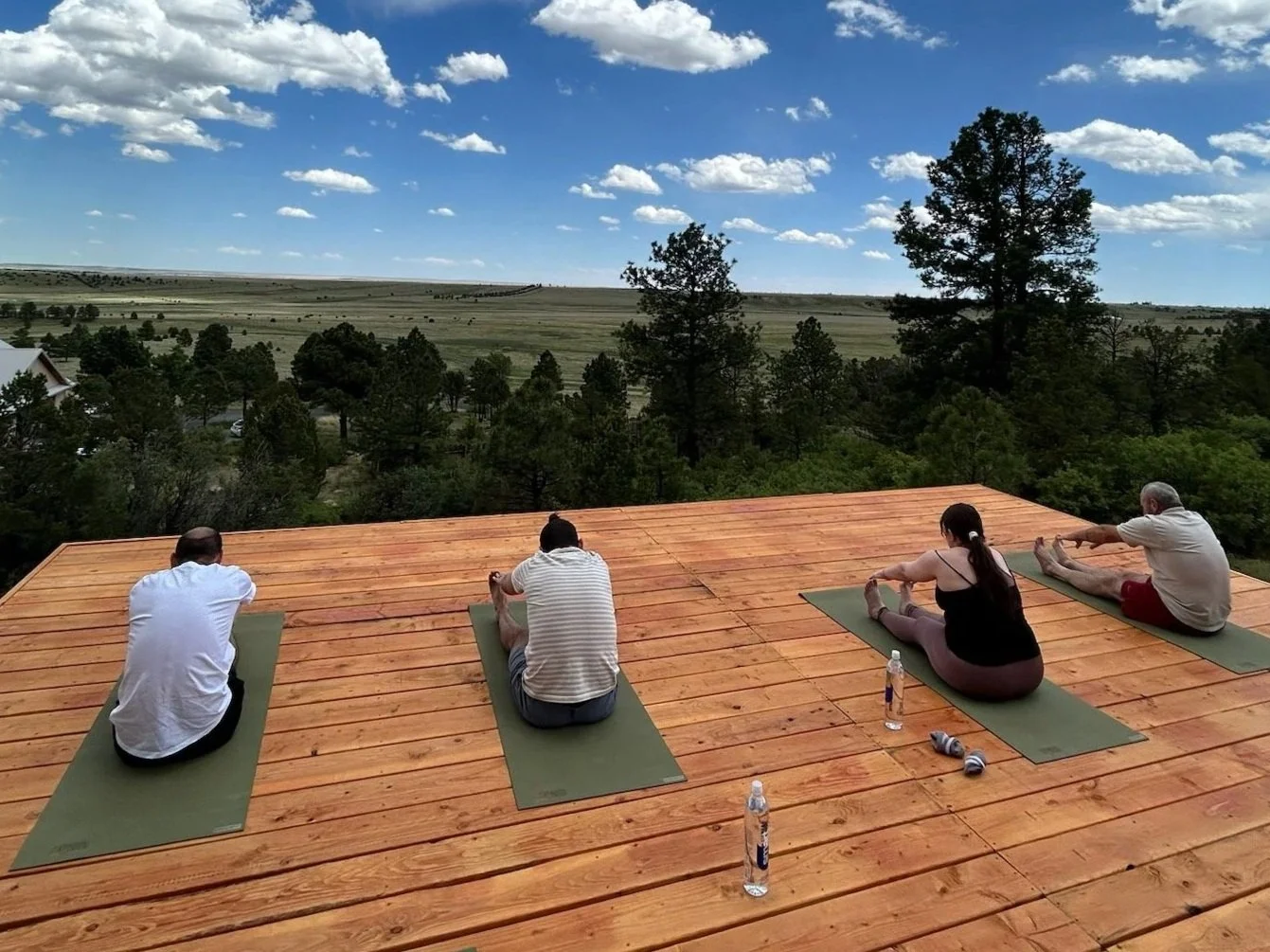 The yoga deck has majestic views of the valley below Leaping Deer Ranch.